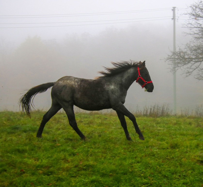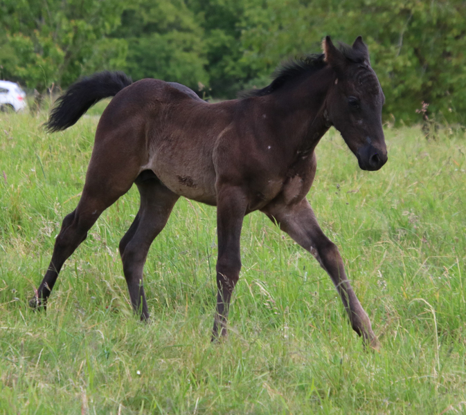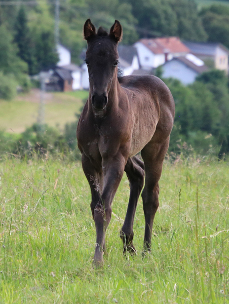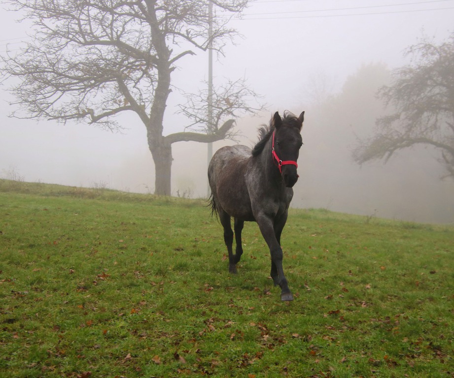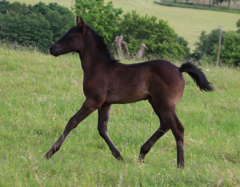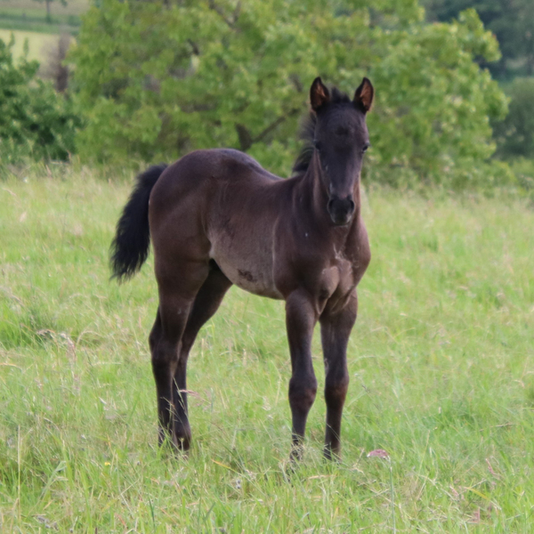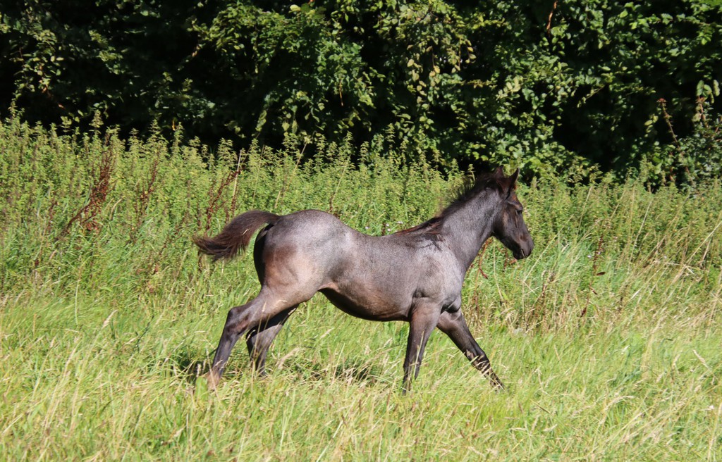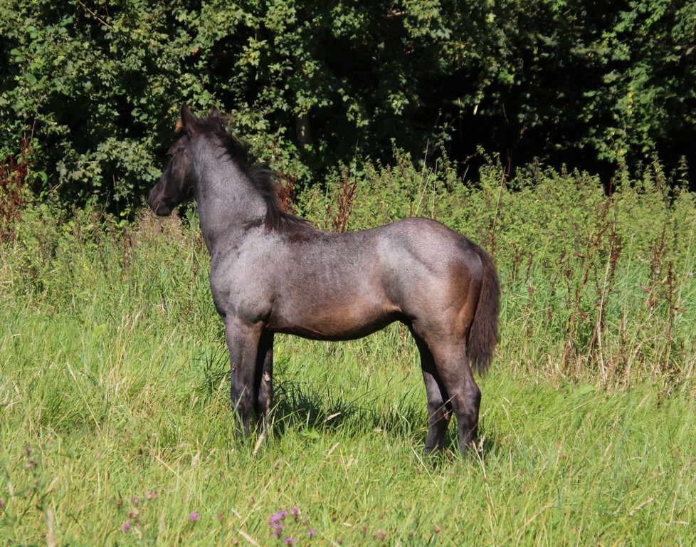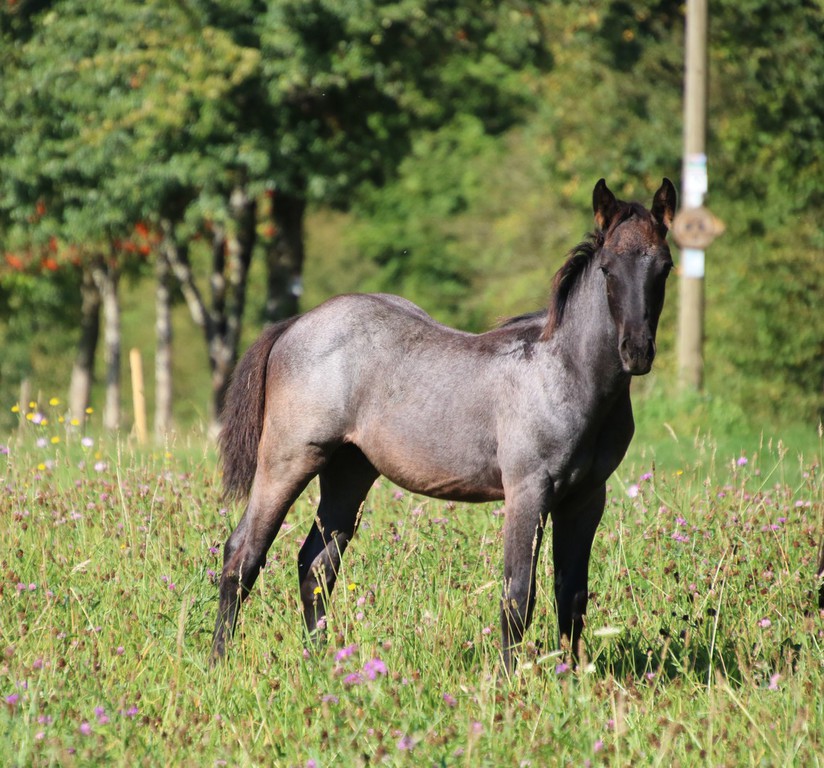 wächst artgerecht im Herdenverband mit anderen Fohlen auf
