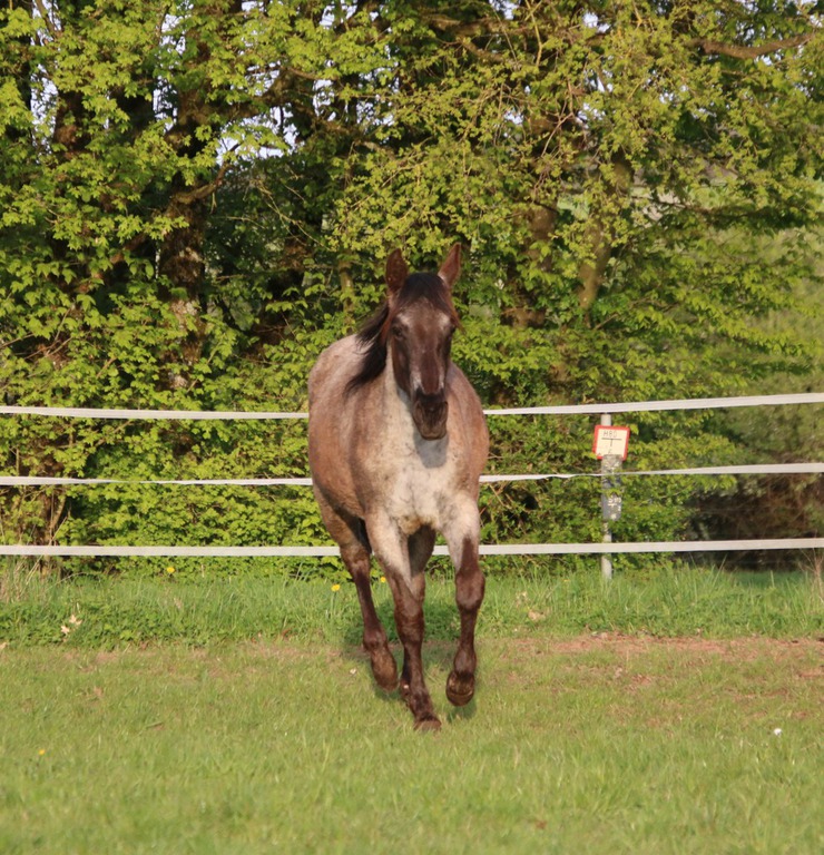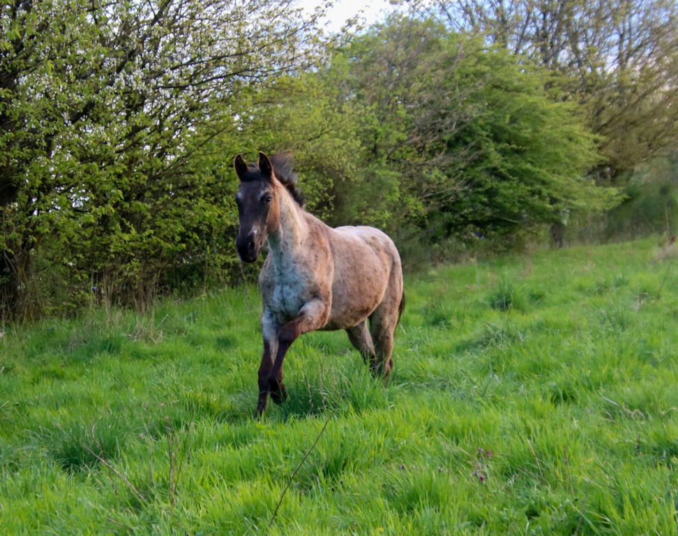 wächst artgerecht im Herdenverband mit anderen Fohlen auf