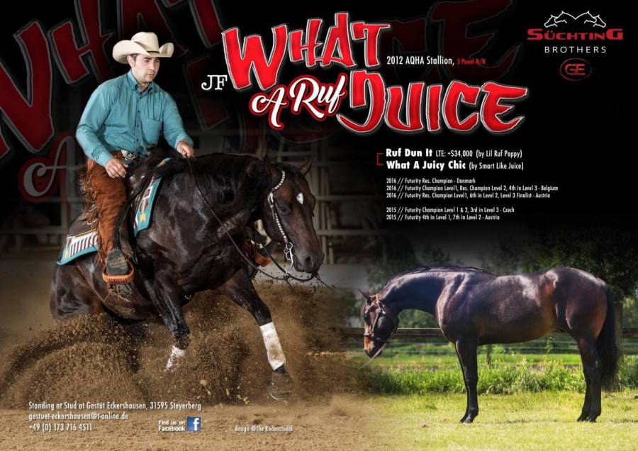 Ein leistungsstarker Sohn des legendären Ruf Dunit , bekannt für seine Vererbung von Rittigkeit, Talent und starkem Mind. Seine Nachkommen überzeugen durch ihren korrekten Körperbau, gute Manier und hervorragendes Potential im Reining-Sport.