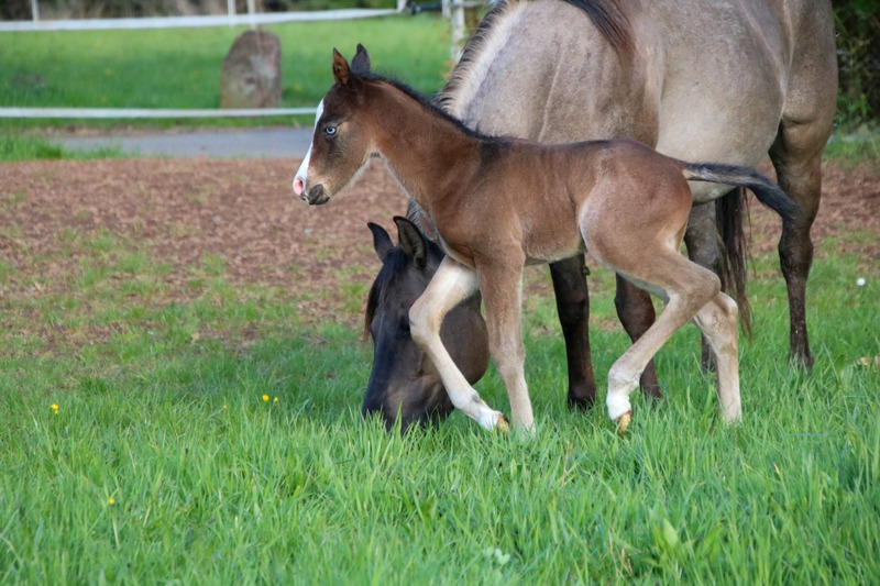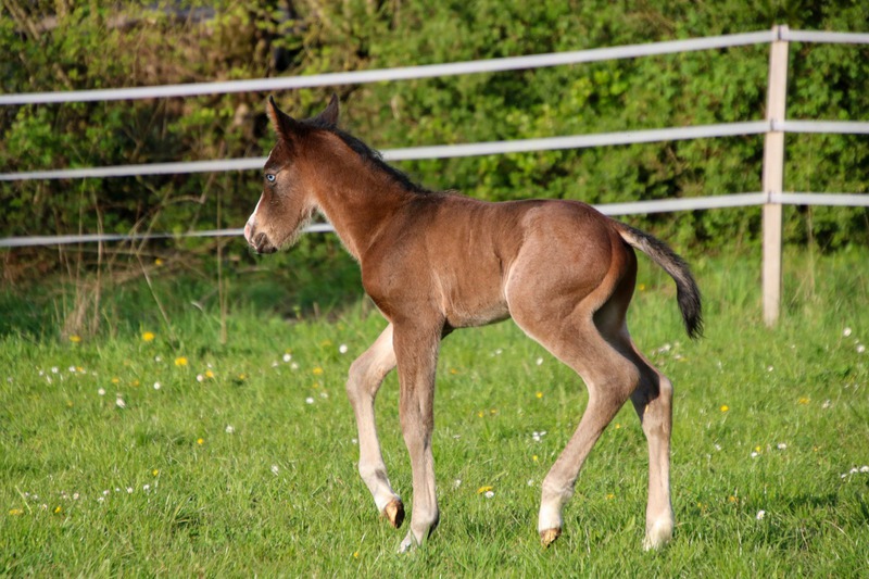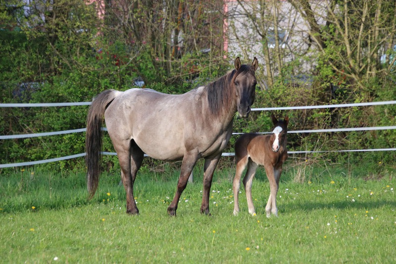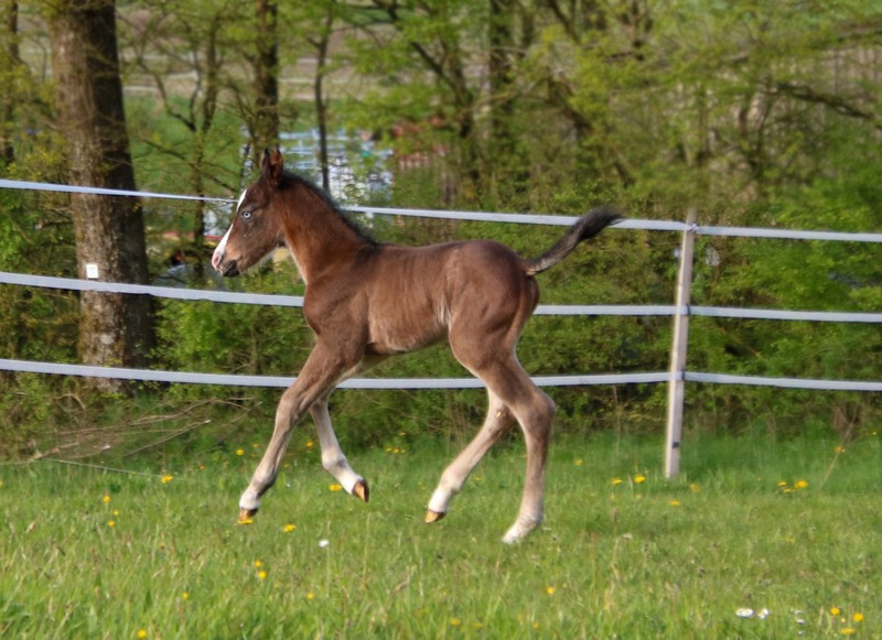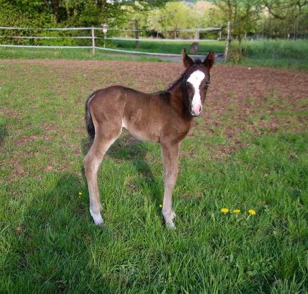wächst artgerecht im Herdenverband mit anderen Fohlen auf