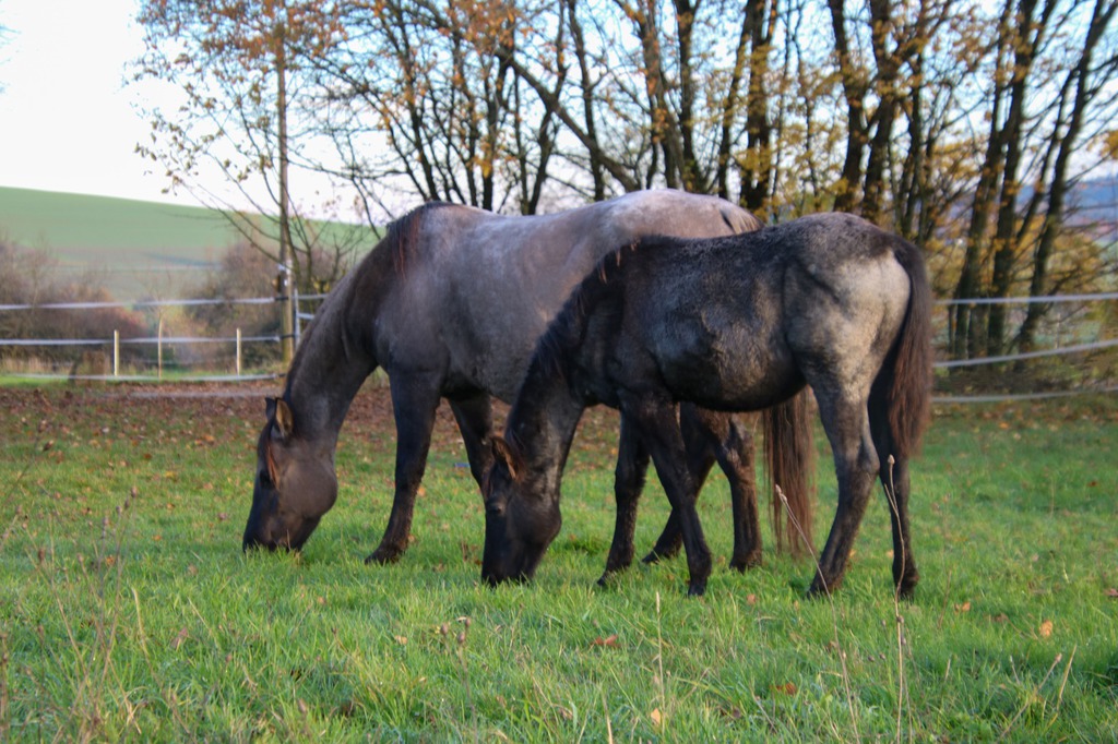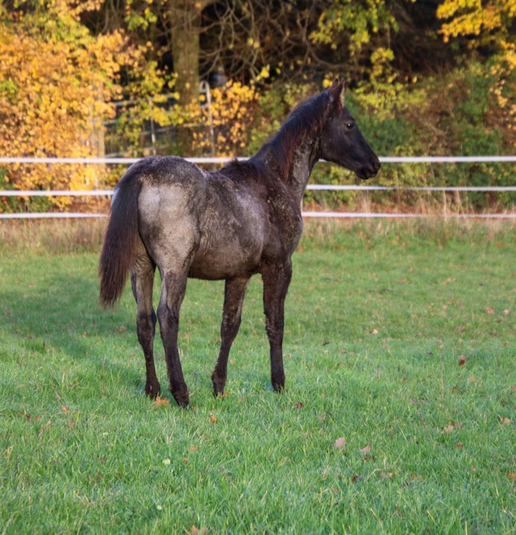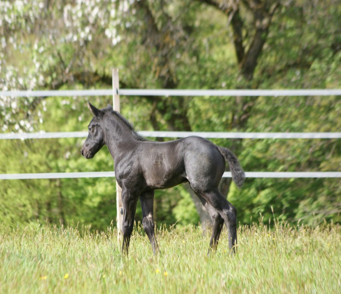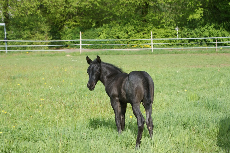 wächst artgerecht im Herdenverband mit anderen Fohlen auf