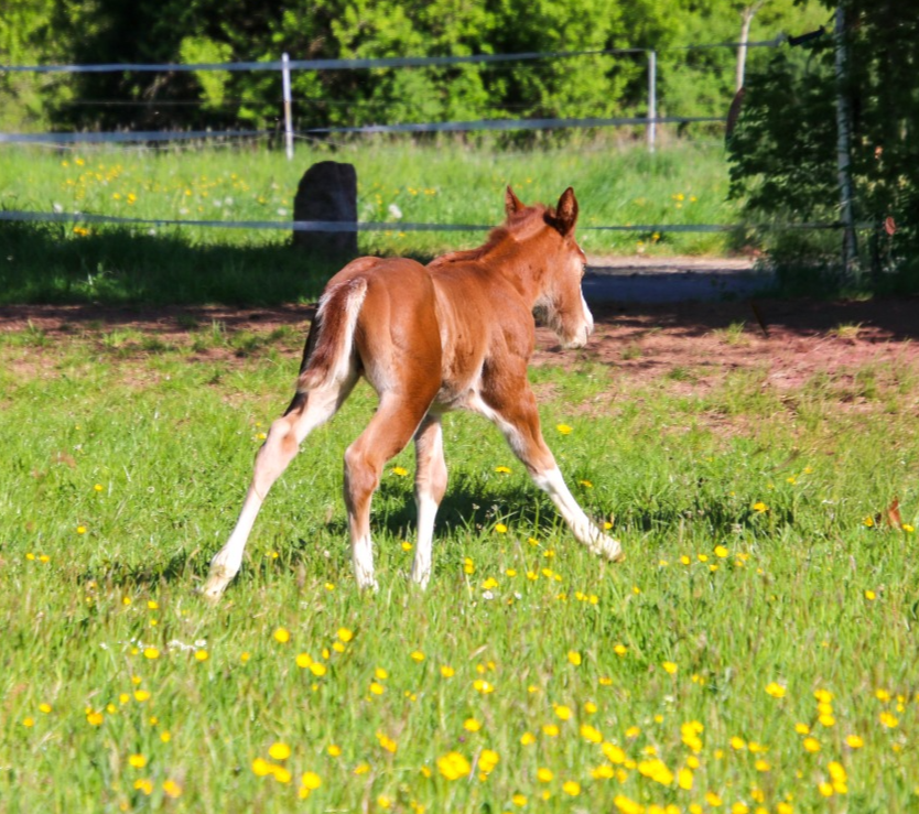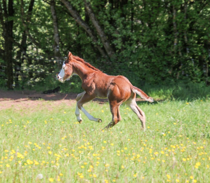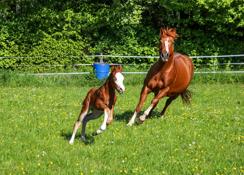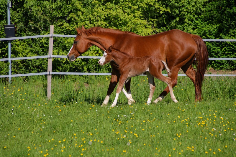 wächst artgerecht im Herdenverband mit anderen Fohlen auf